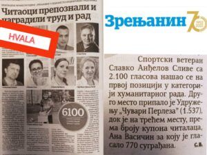 Hvala svim čitaocima „Lista Zrenjanin“ koji su prepoznali naš trud i rad u brojnim akcijama koje sprovodimo! Naravno hvala i „Listu Zrenjanin“ što nas je nominovao za ovu prestižnu nagradu u okvirima našeg Grada.